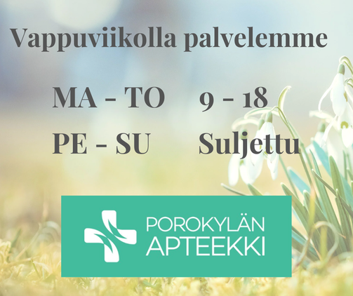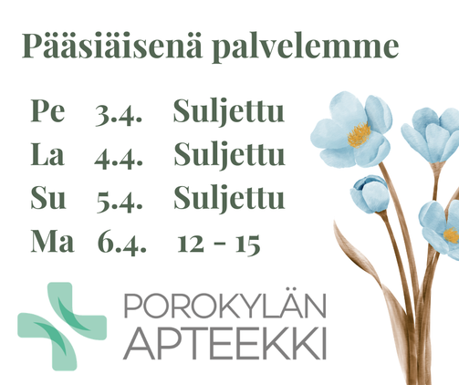 Porokylän apteekki tarjoaa monipuolista palvelua terveytesi hyväksi. Toimipisteemme sijaitsee Nurmeksessa Porokylän puolella keskeisellä paikalla. Meiltä löydät laajan valikoiman lääkkeitä, vitamiineja, haavanhoitotuotteita sekä tuotteita ihon- ja kauneudenhoitoon.